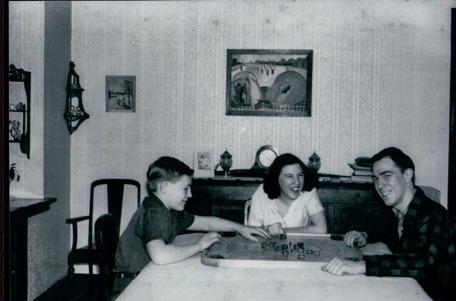James, Mary, and Charles with Mac the dog